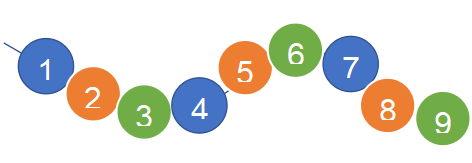 有一串编号从 1 开始的彩色珠子(见下图),从第一颗起,每颗珠子的颜色按照蓝、橙、绿的规律重复出现。
